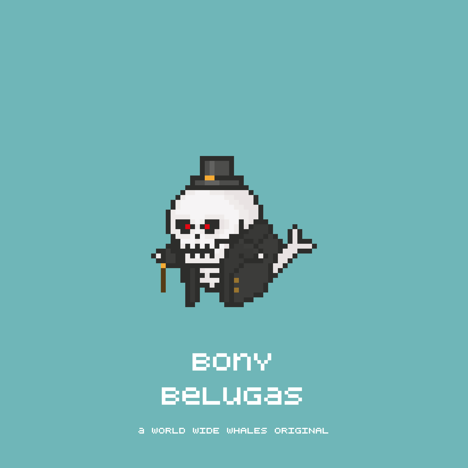 Every world wide whale is unique – generated from an infinite* pool of handdrawn pixel art items. Country-specific items mixed with clichés, science fiction, piraty stuff, magic and a whole lot more.