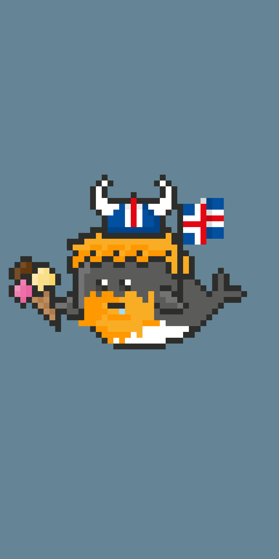 Every world wide whale is unique – generated from an infinite* pool of handdrawn pixel art items. Country-specific items mixed with clichés, science fiction, piraty stuff, magic and a whole lot more.